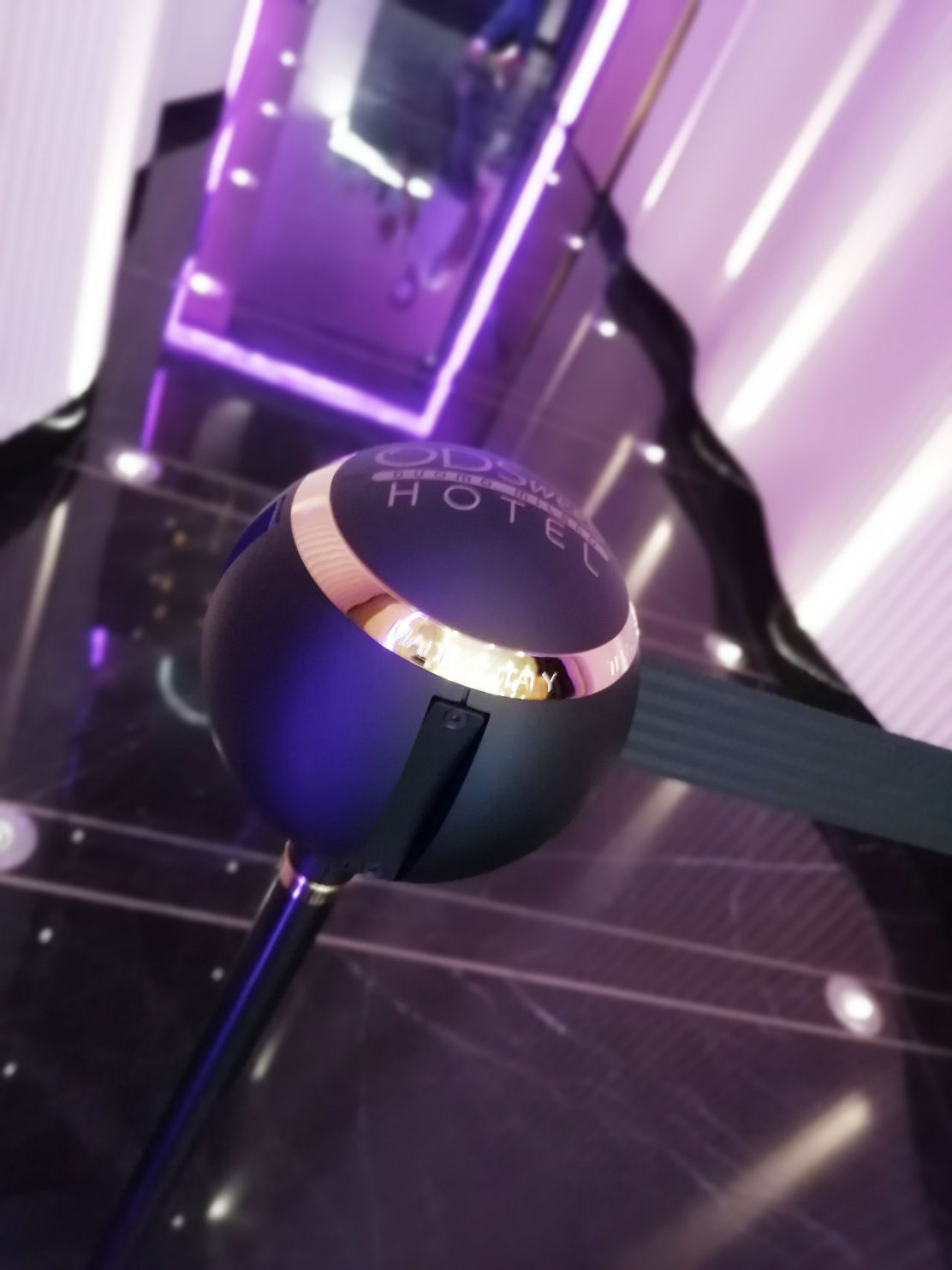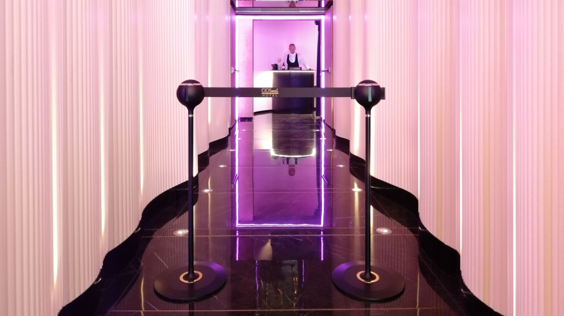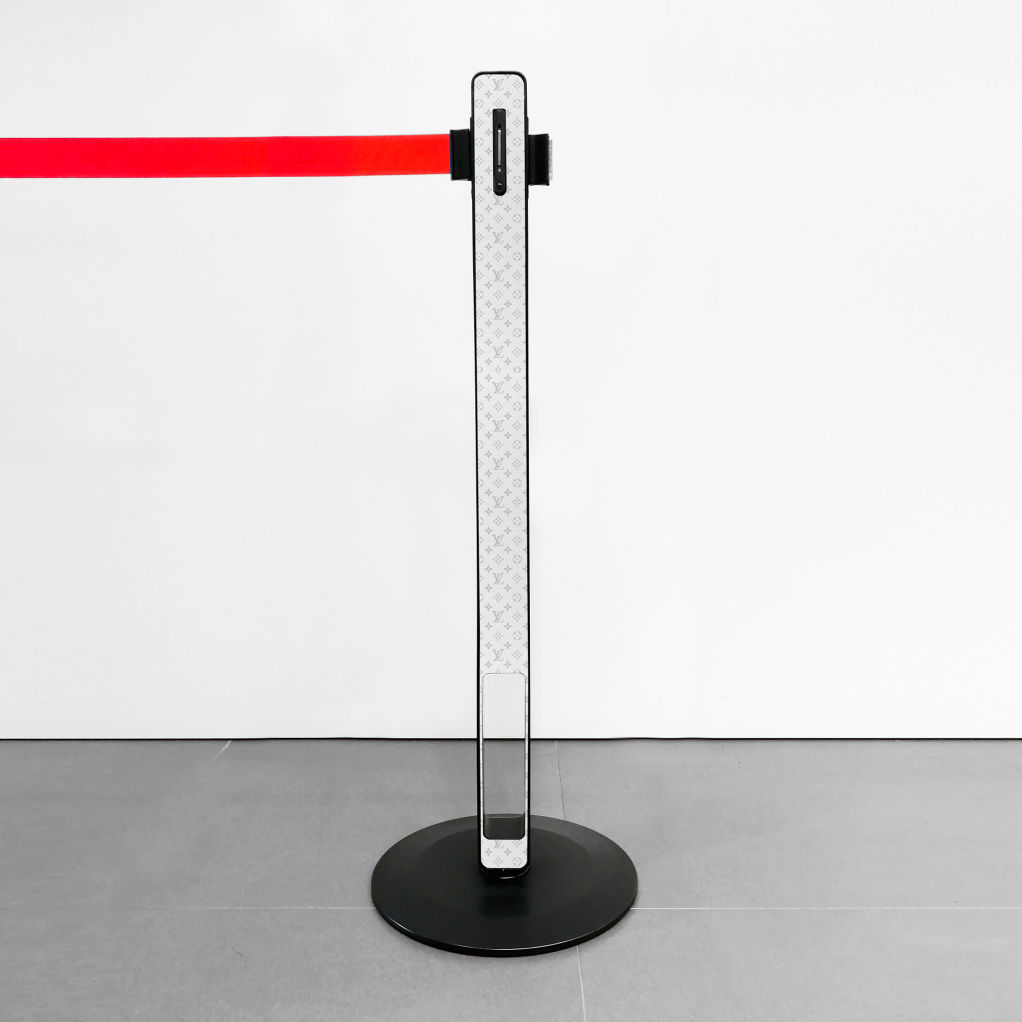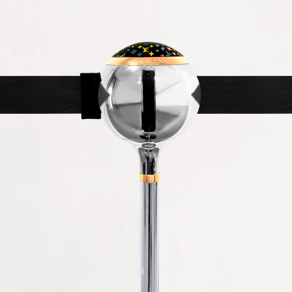 TENDIFLEX® SPHERE MINI, only 59 cm high, discreet but at the same time captivating and communicative. Ideal for museums, art galleries, car displays, food banks, etc.