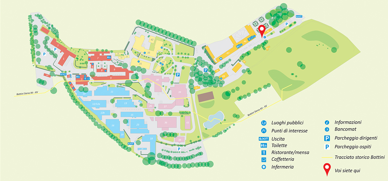 FLEX si è occupata anche di progettare e disegnare il masterplan del sito Novartis (GSK). Il sito di Novartis (GSK) viene suddiviso in 5 aree colorate cosi da rendere lo spostamento e la ricerca più semplice e rapida. Le aree vengono indicate sia sul masterplan (piantina) che sulla segnaletica cosi da aiutare l’utente a trovare il punto a lui interessato.