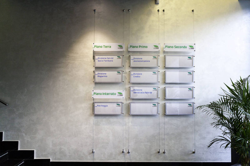 Nel corso degli anni abbiamo affiancato almeno il 70% dei gruppi bancari, dalla progettazione all’allestimento di un efficace sistema comunicativo, di segnaletica direzionale e di gestione dei flussi pedonali.